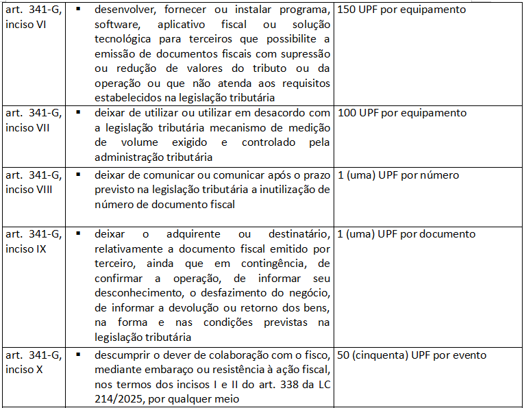 2 – que a infração tenha relação com o descumprimento das obrigações acessórias previstas no art. 341-G da LC 214/2025 (exclusivamente aquelas listadas nos incisos do referido artigo, conforme quadro explicativo abaixo);